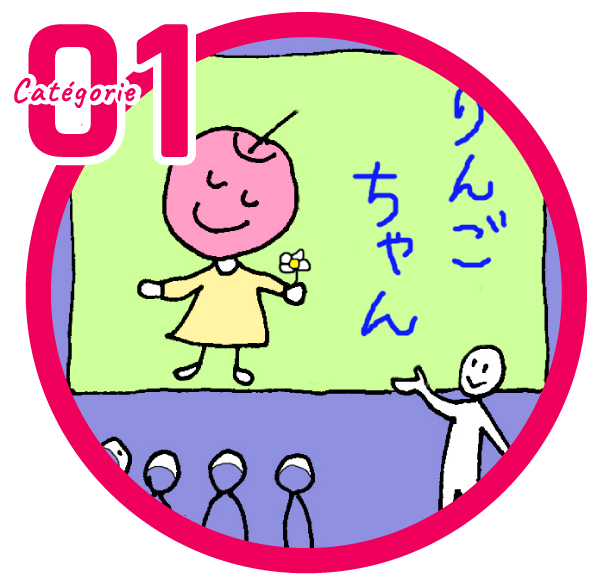 Combine un dessin et un court texte en japonais.