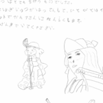 Dans mon etegami, il y a le poème suivant : « À Oguri,Toi qui voyais le futur,Dans le Japon d’aujourd’hui,Ton rêve est t