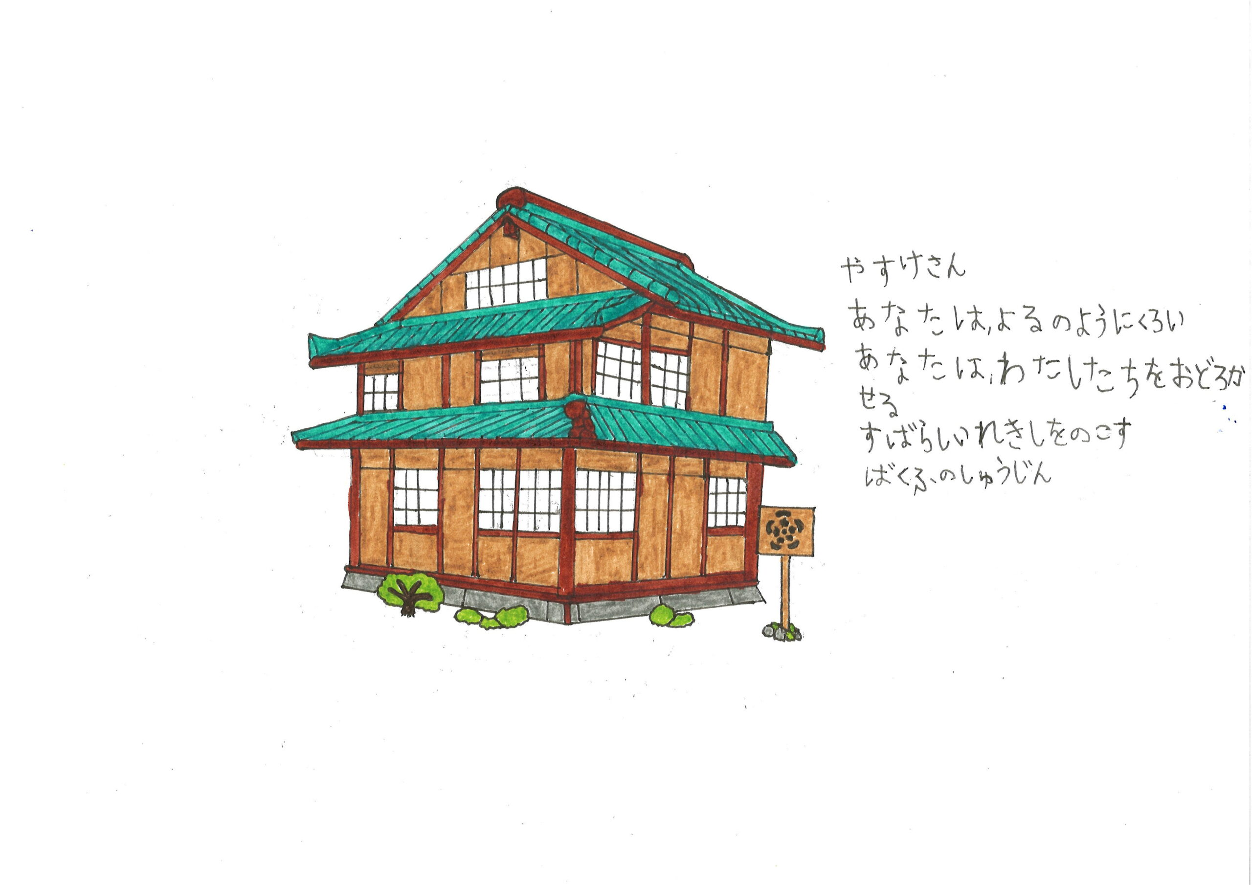 Mon œuvre rend hommage à Hokusai, figure emblématique de la culture japonaise.À travers cet etegami, je souhaitais le re