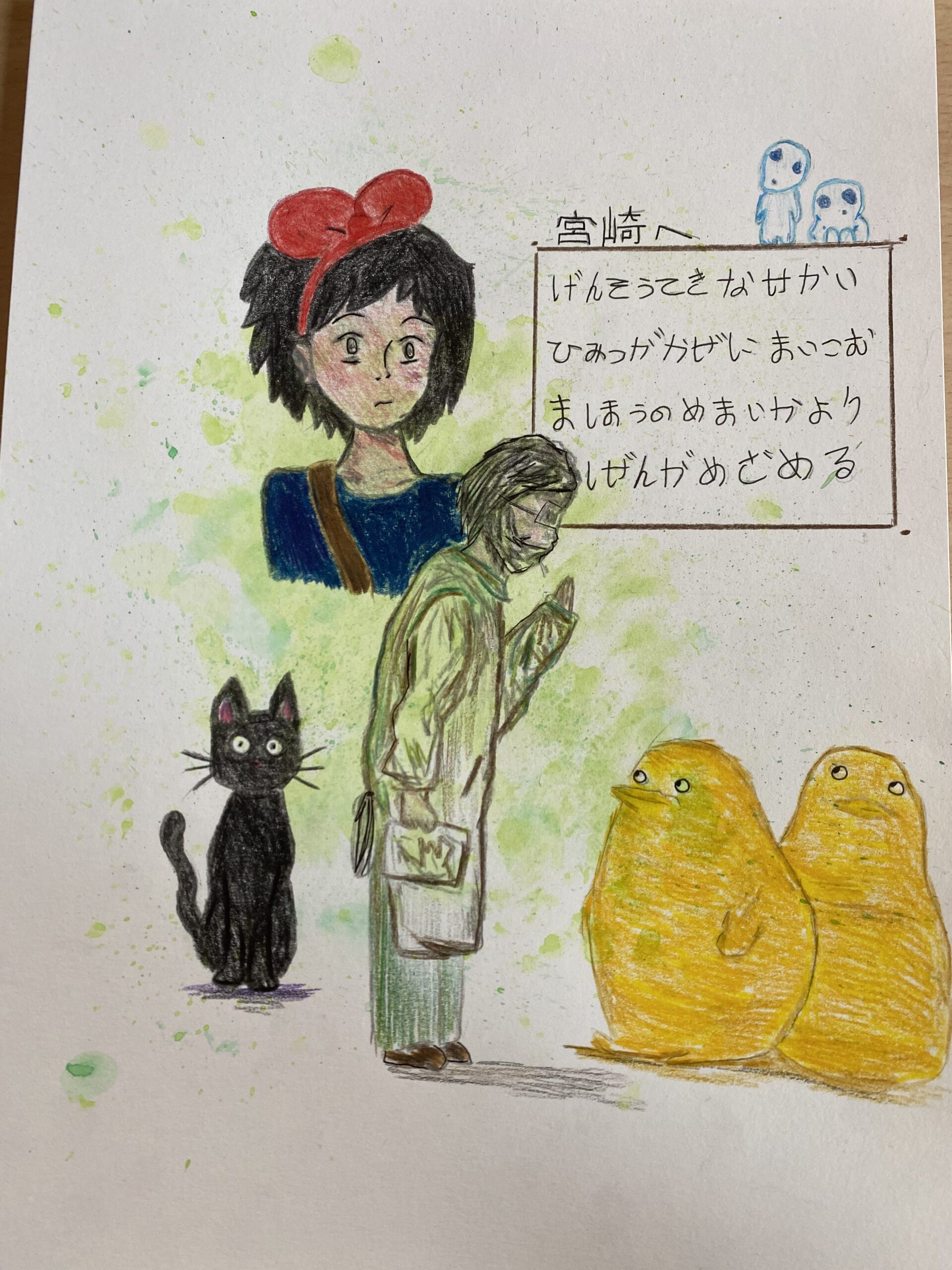 J’ai été très contente de participer à ce concours. C’est l’occasion pour moi de rendre hommage à Miyazaki Hayao dont j’admire l’œuvre et la vie. C’est une façon modeste de remercier pour son travail qui nous fait rêver et réfléchir sur le monde, l’Histoire, l’Humanité et la nécessité de respecter la nature dans son intégralité. Regarder ses films me fait grandir et me donne envie de suivre son exemple, notamment dans mes études et mon orientation professionnelle. J’aimerai devenir architecte et ne jamais oublier dans mon vie que la nature et les humains ont toujours des choses à se dire.