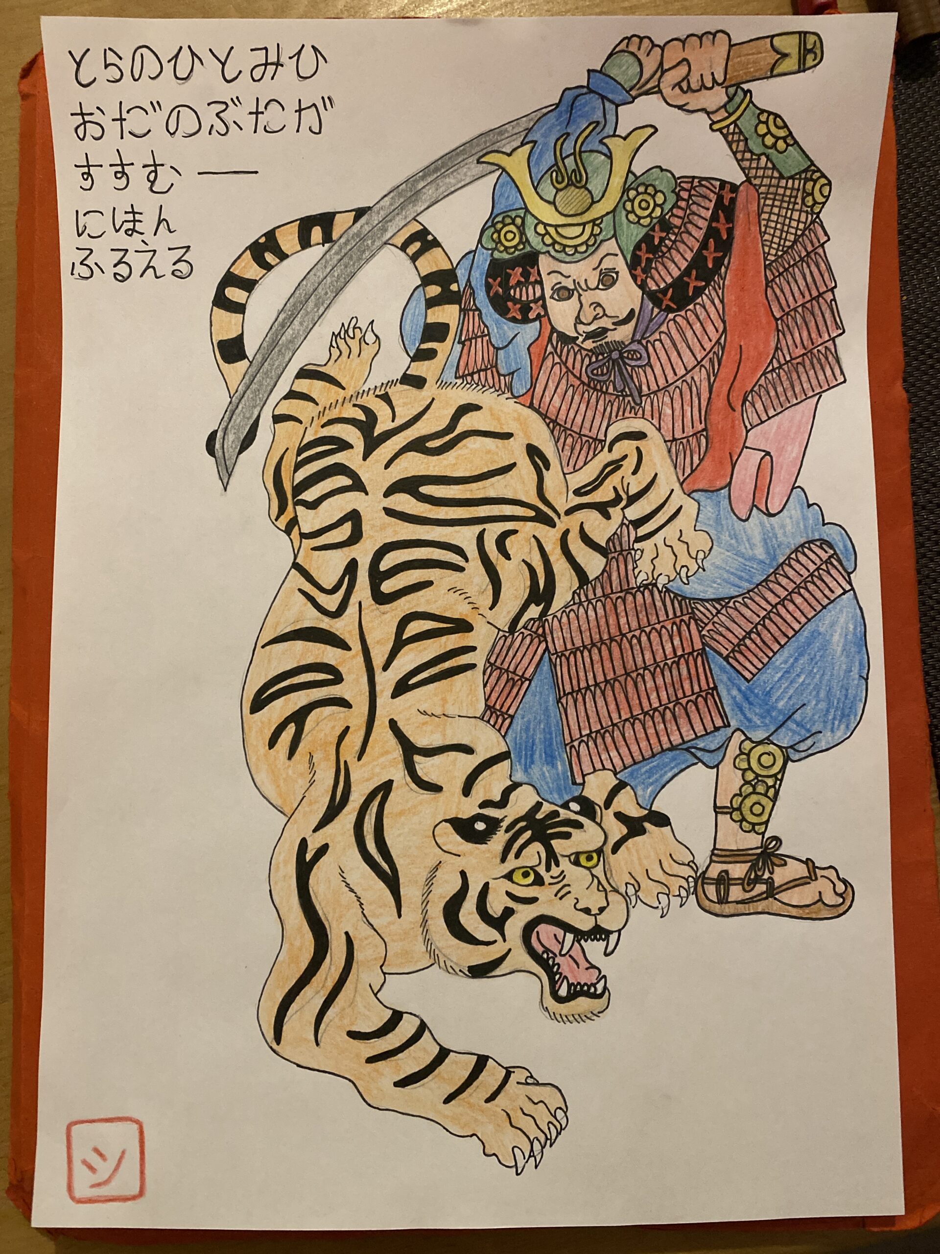 Dans mon etegami, il y a le poème suivant : « À Oguri,Toi qui voyais le futur,Dans le Japon d’aujourd’hui,Ton rêve est t