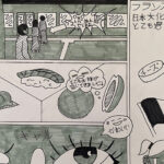 Premier jour… Un français au Japon va rencontrer son patron car c’est son 1er jour de travail. Pendant que son patron commence à se baisser pour faire une courbette, le français fait un mouvement pour lui serrer la main, et finit par lui donner une claque sans faire exprès. Mon manga montre les différentes façons de se saluer en France et au Japon.