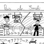 Après un bon repas, un Japonais se sent totalement plein. Pourtant, son ami français commande deux dessert, expliquant avec humour qu’il a un deuxième estomac pour le dessert. Le Japonais, un peu dépassé, finit par se dire que l’estomac de son ami est un véritable trou noir !