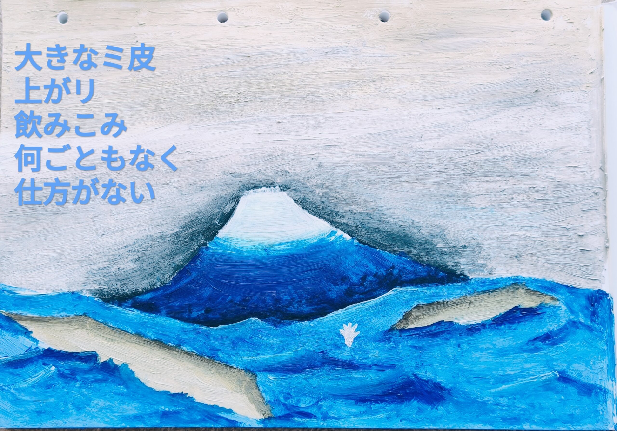 J’ai fait une œuvre s’inspirant beaucoup de la grande vague d’Hokusai, afin de faire hommage à ce gran